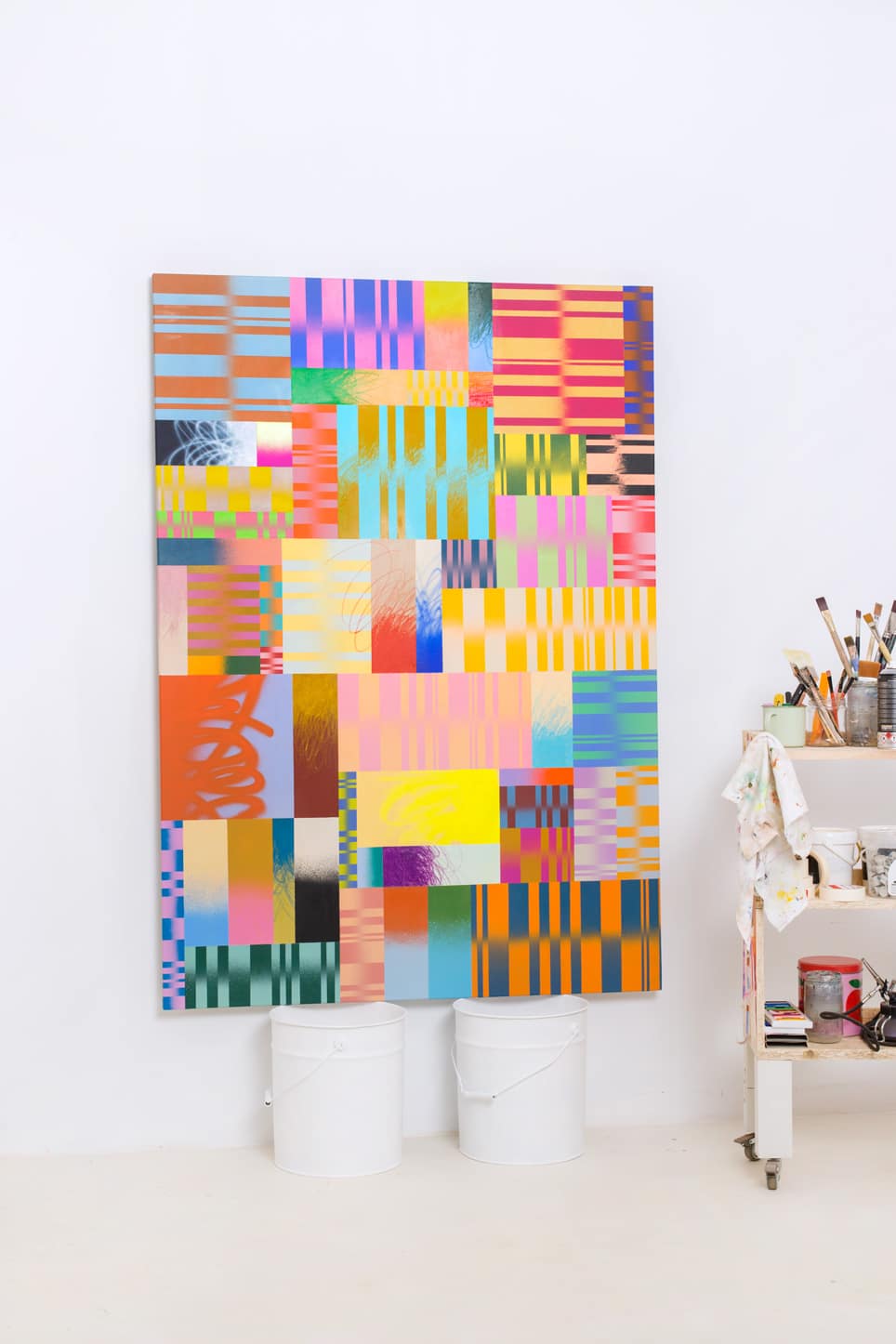 Num. 340 Tetris Series / This painting belongs to my Tetris series, where interlocking elements create a dynamic visual rhythm. Made using mixed media, color becomes the true protagonist: an intense, vivid chromatic palette that energizes the viewer and fills the space with vibrancy. The interaction of hues produces an almost physical energy, a sense of vibration that turns the composition into a sensory experience.